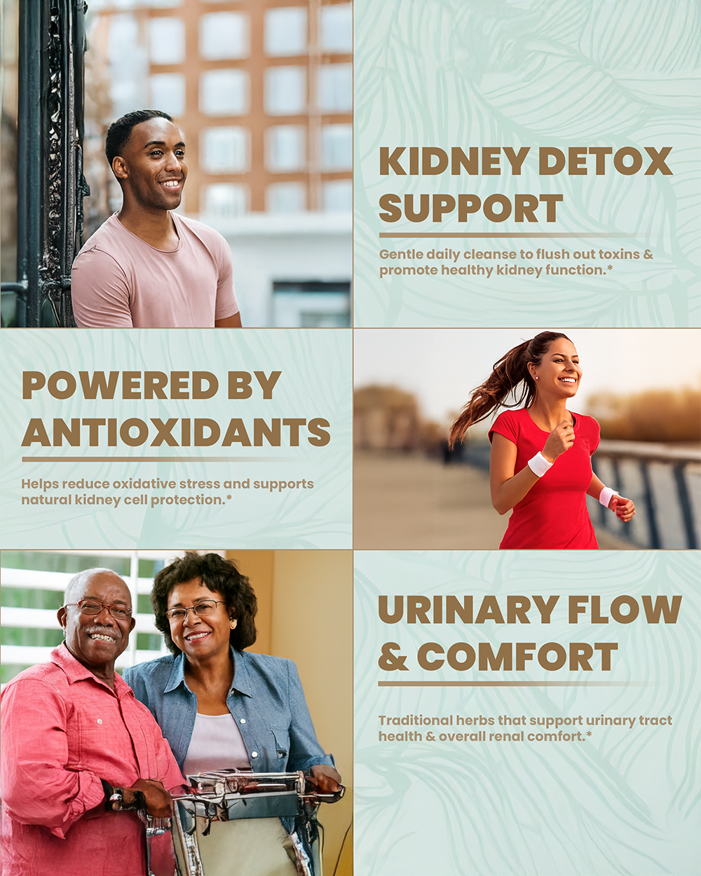 • Vitamins & Minerals: Essential nutrients like Vitamin B6 and magnesium that aid in eliminating toxins and supporting overall kidney function.