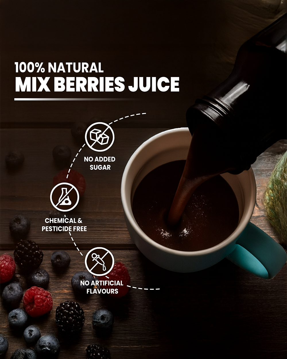 Boosts Immunity: With a potent blend of vitamins and minerals, our Mix Berries Juice provides a natural boost to your immune system, keeping you healthy year-round.
